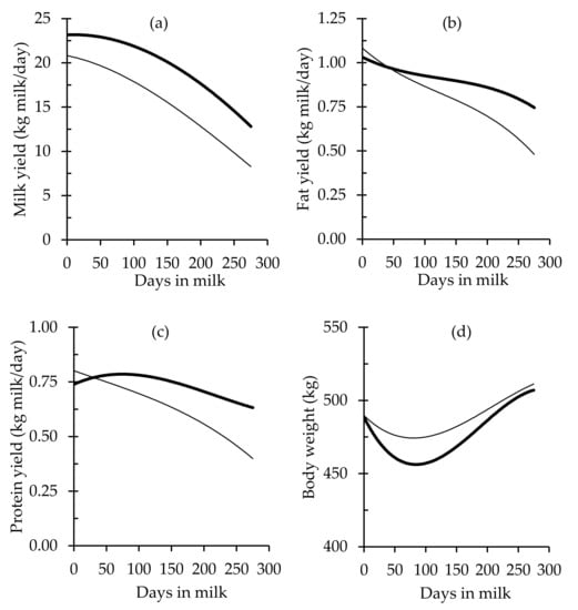 - Silvestre, A.M.; Petim-Batista, F.; Colaço, J. The accuracy of seven mathematical functions in modeling dairy cattle from lactation curves based on test-day records from varying sample schemes. J. Dairy Sci. 2006, 89, 1813–1821. [Google Scholar] [CrossRef]