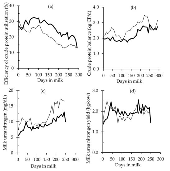 Chicago/Turabian StyleCorrea-Luna, Martín, Daniel Donaghy, Peter Kemp, Michael Schutz, and Nicolas López-Villalobos. 2020. "Efficiency of Crude Protein Utilisation in Grazing Dairy Cows: A Case Study Comparing Two Production Systems Differing in Intensification Level in New Zealand" Animals 10, no. 6: 1036. https://doi.org/10.3390/ani10061036