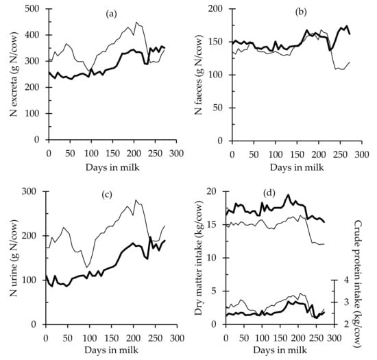 - Mulligan, F.J.; Dillon, P.; Callan, J.J.; Rath, M.; O’Mara, F.P. Supplementary concentrate type affects nitrogen excretion of grazing dairy cows. J. Dairy Sci. 2004, 87, 3451–3460. [Google Scholar] [CrossRef]