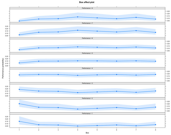 32], and in the current study, Boxes 4, 5 and 7 conferred a significant disadvantage when compared to Box 1. Greyhounds that prefer to run close to the rail are likely to perform better regardless of starting box because they must cover less ground over the course of the race than greyhounds that prefer to run on the outside of the field. As such, greyhounds that prefer to run close to the rail and that also start from Box 1, 2 or 3 are likely to cover less ground than greyhounds with this preference that start from boxes farther from the rail. This issue may be best addressed by adopting track safety recommendations for a lure system that places the lure closer to the centre of the track [