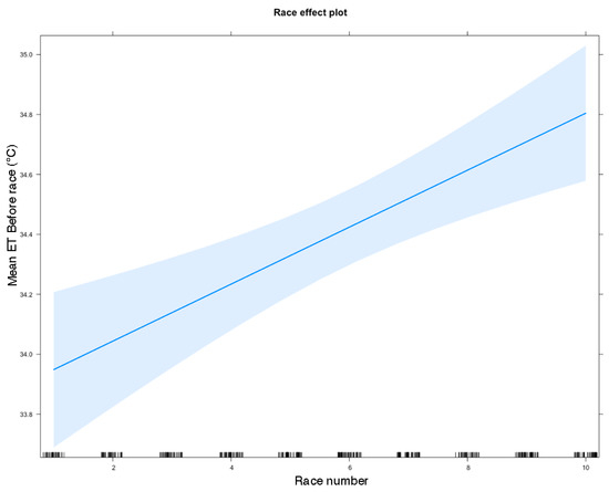 26], but the form of exercise in those studies was prolonged rather than the short intensity of sprint races in the current study. The current mean eye temperatures after racing may be indicative of a stronger stress response to racing, and the disruptive effects of over-arousal on performance. An alternative reason for this relationship is that increased mean eye temperature after racing is more indicative of higher core body temperature than directly of emotional state. A previous study suggested it takes at least 30-min for dogs’ core body temperature to return to baseline after 30-min of exercise [