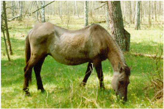 Thanks to the robustness and high adaptability to different habitats, Koniks have been introduced to various environments to maintain the biodiversity and prevent the encroachment of undesired vegetation [19,20,21,22], as elements of “naturalization” of European plains [21,22,23], or to crossbreed with other local primitive breeds like Dülmener horses [17]. The Koniks have also been exported to be used in several environmental projects in Europe (Table 1).