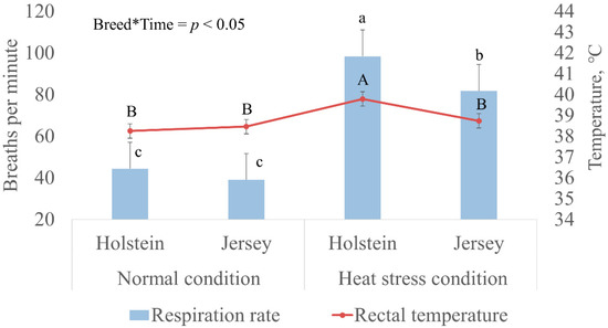 3.1. Heat Stress Response Differences between Holstein and Jersey Cows in Hot Weather Condition