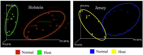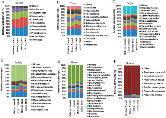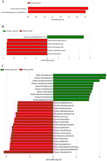 3.2. Changes in the Ruminal Microbial Diversity of Holstein and Jersey Cows in the Heat Stress Environment