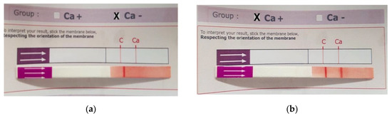 Equine Ca blood typing by immunochromatographic method. Sample Ca− (a) and Ca+ (b).