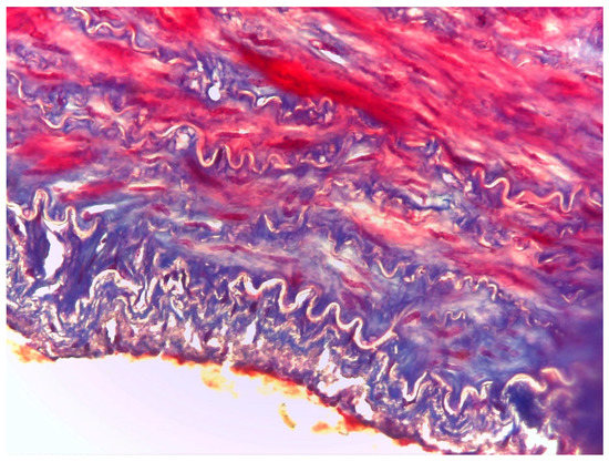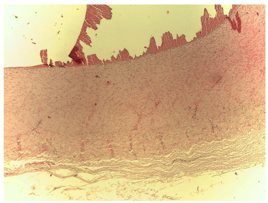 Bovine carotid artery with false aneurysm. Haematoxylin–Eosin (H.E.) (20×).