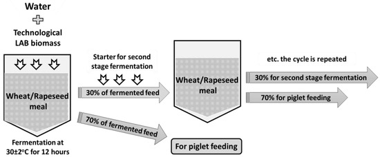 - Vadopalas, L.; Ruzauskas, M.; Lele, V.; Starkute, V.; Zavistanaviciute, P.; Zokaityte, E.; Bartkevics, V.; Badaras, S.; Klupsaite, D.; Mozuriene, E.; et al. Pigs’ feed fermentation model with antimicrobial lactic acid bacteria strains combination by changing extruded soya to biomodified local feed stock. Animals 2020, 10, 783. [Google Scholar] [CrossRef] [PubMed]