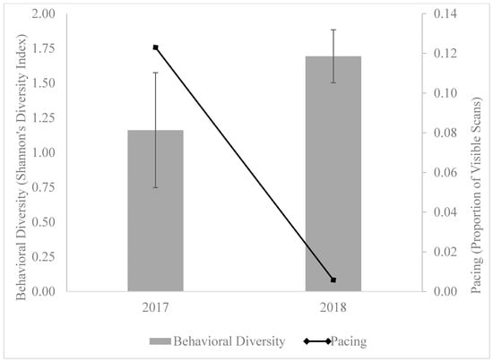 Behavioral diversity and pacing behavior of Amur leopard before and after utilizing outcome-based behavior workflow.
