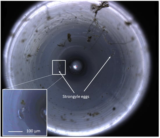 The FECPAKG2 Micro-I captures images of the FEC produced using the G2 method and is demonstrated in Figure 2. Both the sedimentation time and accumulation time were optimised for a maximum helminth egg recovery to 30 and 6 min, respectively, as described in Section 2.1 “Initial optimisation” (Data not shown).