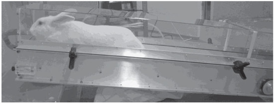 On the other hand, in laboratory rabbits, there are conflicting reports about their willingness to run. Studies conducted by Jover et al. [58] and Faris et al. [59] reported that rabbits rarely ran at a moderate pace of 13 m/min for more than 1–2 min. They also described that laboratory rabbits had a limited capacity for aerobic exercise because they are outside their natural environment [21,58,59]. In spite of this, studies have shown that rabbits can perform voluntary aerobic exercise on a treadmill continuously at a moderate speed [38,49].