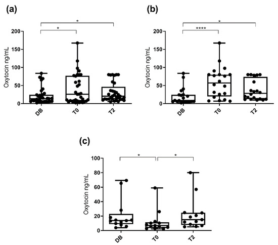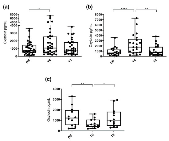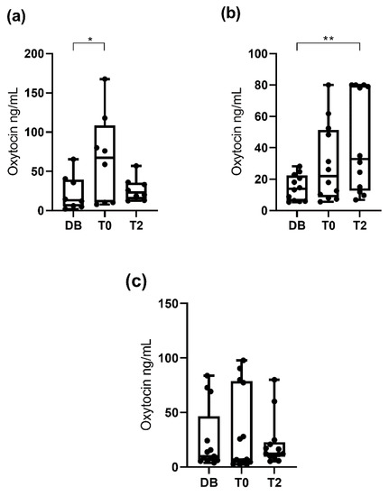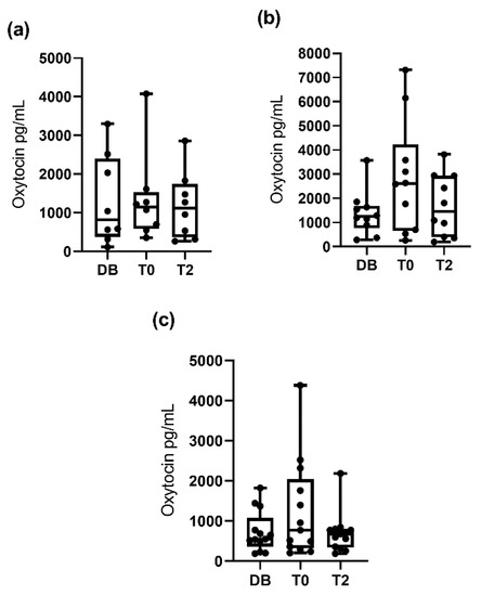 3.2. Oxytocin Concentration Measured with the Polyclonal Assay
