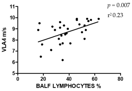 Results of linear regression between the percentage of BALF lymphocytes and VLA4.