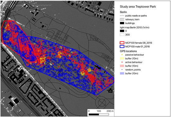 Chicago/Turabian StyleBerger, Anne, Briseida Lozano, Leon M. F. Barthel, and Nadine Schubert. 2020. "Moving in the Dark—Evidence for an Influence of Artificial Light at Night on the Movement Behaviour of European Hedgehogs (Erinaceus europaeus)" Animals 10, no. 8: 1306. https://doi.org/10.3390/ani10081306