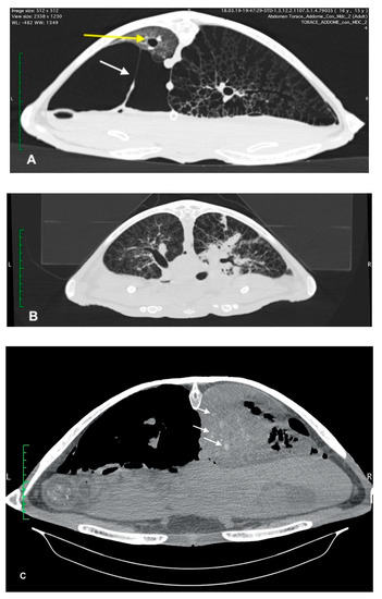 14]. Coeliomiocentesis was performed in the four subjects with total resolution of buoyancy, and we suppose that buoyancy was an event secondary to lung rupture or pneumonia.