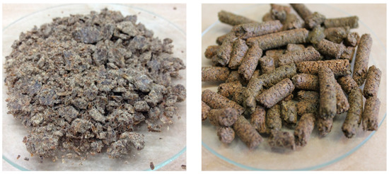 Chemical composition of hempseed and milk thistle seed cakes used by us [34,35] are shown in Table 1. Generally, the seed cakes (i.e., expellers or pomace) are protein feed with residual 10% ether extract and relatively high amount of crude fiber. Figure 1 shows milk thistle seed cakes and hempseed cakes used in our experiments.