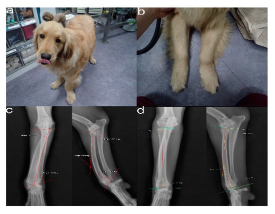 - Knapp, J.L.; Tomlinson, J.L.; Fox, D.B. Classification of angular limb deformities affecting the canine radius and ulna using the center of rotation of angulation method. Vet. Surg. 2016, 45, 295–302. [Google Scholar] [CrossRef]