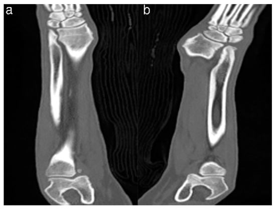 - Crosse, K.R.; Worth, A.J. Computer-assisted surgical correction of an antebrachial deformity in a dog. Vet. Comput. Orthop. Traumatol. 2010, 23, 354–361. [Google Scholar] [CrossRef]