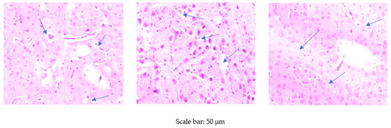 The histopathological examination covered the structure of the cerebral cortex, which performs separate, important vital functions in certain zones. Samples of the brain were cut in two lengthwise and fixed for 24 h in 5% formalin, pH = 7.2. Within 24 h, the fixed tissue fragments were passed through increasing concentrations of alcohol solutions, acetone, and xylene into paraffin blocks in a tissue processor (Leica TP-20). Paraffin-embedded microscope sections 5 μm thick were stained with haematoxylin and eosin (HE staining). Histological evaluation of the brain was carried out using a computer-assisted microscopic image analysis system. The system includes a light microscope (Nikon Eclipse E600, Melville, NY, USA) with a digital camera (Nikon DS-Fi1, Melville, NY, USA) and a PC with image-analysis software (NIS-Elements BR-2.20, Laboratory Imaging, Melville, NY, USA).
