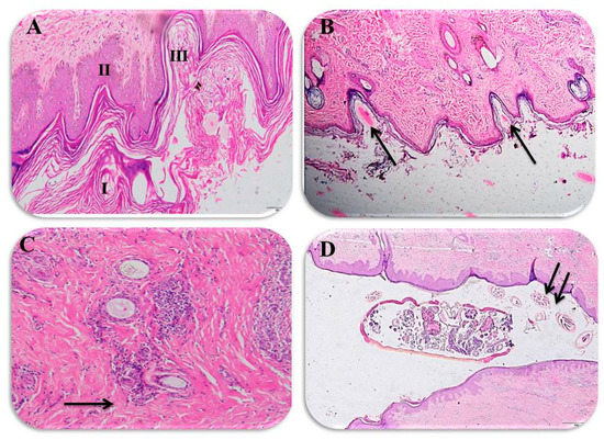 - Parmar, A.J.; Singh, V. Pathomorphological studies on sarcoptic mange in Camelus dromedarius in Banaskantha district. J. Vet. Parasitol. 2008, 22, 29–31. [Google Scholar]