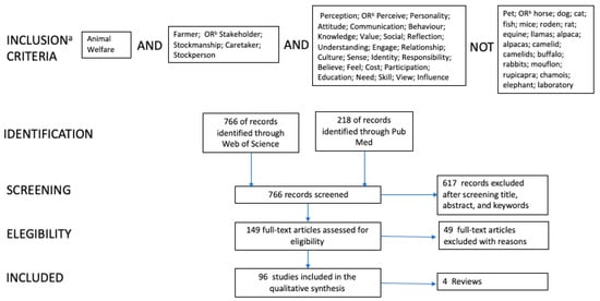 To this end, a review of the literature on factors which affect farmer decision-making regarding FAW is required to advance the approach to policy making and implementation in FAW. The aim of this review is to identify and understand the factors that can support behavioral change in farmers towards improved FAW, by synthesizing evidence collected from multiple disciplines focused on farmers’ perceptions that are relevant and have implications for FAW improvement. The objectives focused on two questions “what do farmers think (farmer’s general view) about farm animal welfare?” and “what are the factors that influence their thinking?”. The third objective was to provide recommendations on methodological approaches to exploring farmers’ perceptions to FAW, to serve as a link between the past and future research and help to inform and direct interdisciplinary research endeavors within this sphere.