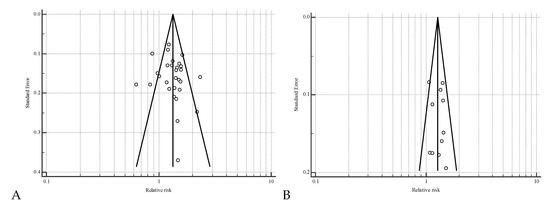 - Higgins, J.P.T.; Thompson, S.G.; Deeks, J.J.; Altman, D.G. Measuring inconsistency in meta-analyses. BMJ 2003, 327, 557–560. [Google Scholar] [CrossRef]