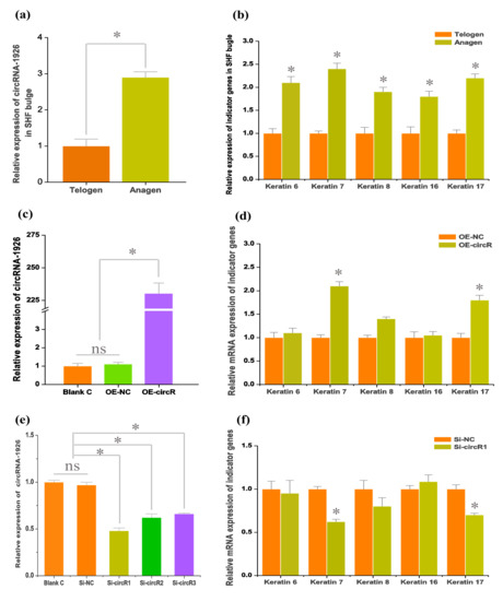 3.2. Expression Analysis of CircRNA-1926 in Bulge and Its Role in Regulating the Differentiation of SHF Stem Cells into Hair Follicle Lineages