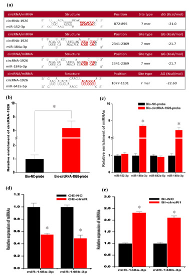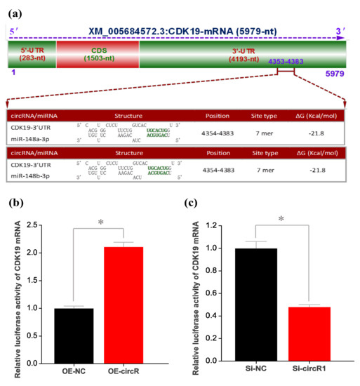 3.5. CircRNA-1926 Positively Regulates the Expression of CDK19 through miR-148a/b-3p