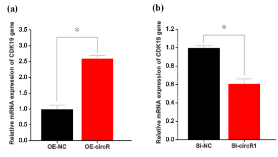 3.4. CircRNA-1926 Promotes CDK19 Expression without Modulating the Methylation Level of Its Promoter Region