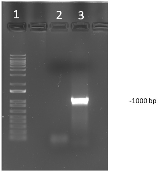 However, after sending the samples for sequencing, the laboratory reported that some samples presented secondary structures or loss of signal, making the sequencing incomplete. Thus, a second reaction targeting a 1000 bp amplicon within the first target was performed to fill the gaps in the first obtained sequence (Figure 1). This reaction was similar but with a different set of primers; ILTVF (5′ CGAATGCATCCTTAGACGGG 3′) and ILTVR (5′ AGCTCGAGAAATTGCAGCG 3′) (USDA reference genome coordinates 22,364-23,364). The primers were designed using the Primer3 web version 4.0.0 with the default settings (https://primer3plus.com/primer3web/primer3web_input.htm). For this second reaction, thermocycler conditions were: Initial denaturation at 94 °C for 2 min, followed by 40 cycles of a three-step amplification protocol: Denaturation at 94 °C for 30 s, annealing at 60 °C and elongation at 68 °C for 60 s each. All PCR products were purified using QIAquick® PCR Purification Kit (Qiagen, Hilden, Germany).