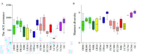 - Caporaso, J.G.; Kuczynski, J.; Stombaugh, J.; Bittinger, K.; Bushman, F.D.; Costello, E.K.; Fierer, N.; Pena, A.G.; Goodrich, J.K.; Gordon, J.I.; et al. QIIME allows analysis of high-throughput community sequencing data. Nat. Methods 2010, 7, 335–336. [Google Scholar] [CrossRef]