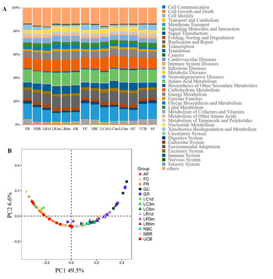 - Langille, M.G.; Zaneveld, J.; Caporaso, J.G.; McDonald, D.; Knights, D.; Reyes, J.A.; Clemente, J.C.; Burkepile, D.E.; Vega, T.R.; Knight, R.; et al. Predictive functional profiling of microbial communities using 16S rRNA marker gene sequences. Nat. Biotechnol. 2013, 31, 814–821. [Google Scholar] [CrossRef]