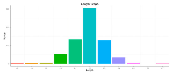 Length distribution of the sequences. (Different colors represent the distribution of miRNA length).