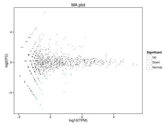 MA diagram of differentially expressed miRNA in the CS and CON groups.