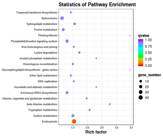 Target gene prediction was implemented using miRNA and target scan based on newly predicted miRNAs, known miRNAs, and gene sequence evidence of corresponding species. After sequencing, 670 known miRNAs were found, but 418 known miRNAs were able to predict target genes. The remaining known miRNA did not predict target genes. These known miRNAs predicted a total of 12,485 target genes. In addition, GO enrichment analysis was used on the target genes of differentially expressed miRNAs. The differentially expressed miRNAs were enriched in 117 GO terms (p < 0.01), including 26 molecular functions (MFs), 20 cell component (CC), and 71 biological processes (BP) in the CS vs. the CON group (Table S4). Meanwhile, the KEGG pathway analysis of differentially expressed miRNA target genes help us to understand the biological functions of genes. The differentially expressed miRNAs target genes had no significant enriched signal pathway in CS and CON (p > 0.05). Although these signaling pathways were not significant, the top 20 signal pathways contain some metabolic pathways that may be indirectly related to yak reproduction (Table S5). These signaling pathways include beta-alanine metabolism, tryptophan metabolism; sphingolipid metabolism; alanine, aspartate, and glutamate metabolism; inositol phosphate metabolism, etc. (Figure 6). We also identified some key reproduction-related genes, such as LEP, NOTCH1, KLF7, VEGFA, GNAQ, GTAT6, and CCND2 (Table 7).