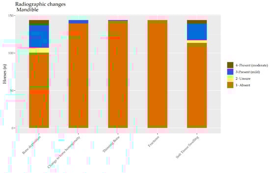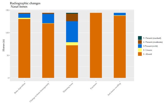 Equine skulls are complex structures and so the current focus on the nasal bones meant that mA, kVp, exposure time, and focal spot–film distance were optimised for the nasal bones, not the mandibles. Future studies may benefit from treating the two sites separately. Longitudinal studies will be needed to reveal the role of various risk factors in the ontogeny of these lesions. There may be merit in separating the lesions of the mandible and nasal bones for such an exercise.