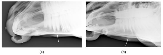 The authors considered calculation of the negative predictive value (NPV) and positive predictive value (PPV) of the physical examination findings for radiographic change but ultimately, rejected them for two main reasons. Firstly, the NPV and PPV are affected by disease prevalence and the horses in the current study represent a unique population subject to unique equitation uses and husbandry that do not necessarily reflect the uses and husbandry of horses more broadly. Secondly, although radiography may be considered prima facie to be somehow ‘more objective’ than physical exam, it does not necessarily follow that radiology should be considered the ‘gold standard’ assessment tool for these lesions, and particularly, that horses who do not show radiographic disease should be considered unaffected by noseband injury. It is not uncommon, as a general principle for clinical signs to precede the development of radiographic change [