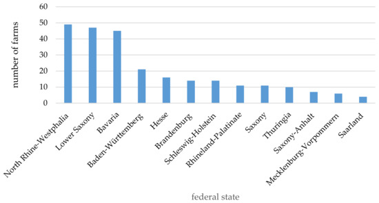 Of the 255 farms evaluated, most were located in North Rhine–Westphalia (49 farms), Lower Saxony (47 farms) and Bavaria (45 farms) (Figure 1).