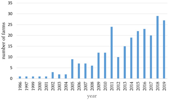 A total of 55.1% (n = 140/254) of the owners had started keeping South American camelids in the last six years (2014–2019) (Figure 2).