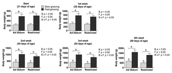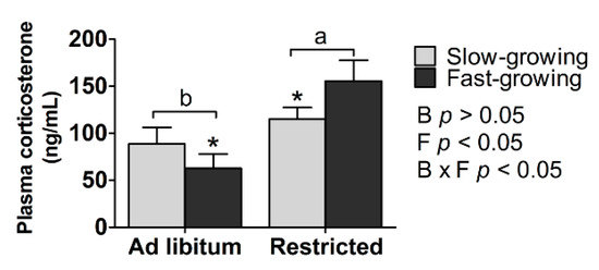 - Rajman, M.; Jurani, M.; Lamosova, D.; Macajova, M.; Sedlackova, M.; Kost’al, L.; Jezova, D.; Vyboh, P. The effects of feed restriction on plasma biochemistry in growing meat type chickens (Gallus gallus). Comp. Biochem. Physiol. Part A Mol. Integr. Physiol. 2006, 145, 363–371. [Google Scholar] [CrossRef]