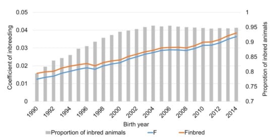 - Smith, L.A.; Cassell, B.G.; Pearson, R.E. The Effects of Inbreeding on the Lifetime Performance of Dairy Cattle. J. Dairy Sci. 1998, 81, 2729–2737. [Google Scholar] [CrossRef]