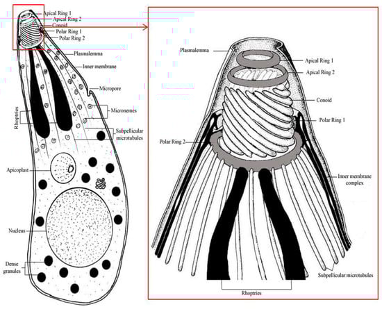- Levine, N.D. Taxonomy of the Sporozoa. J. Parasitol. 1970, 56, 208–209. [Google Scholar]