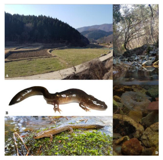- Sugawara, H.; Watabe, T.; Yoshikawa, T.; Ngano, M. Morphological and molecular analyses of Hynobius dunni reveal a new species from Shikoku, Japan. Herpetologica 2018, 74, 159–168. [Google Scholar] [CrossRef]