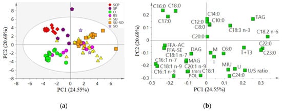 3.3.3. Lipid Classes (FFA-SE, MAG, DAG, TAG, and POL) and Acidity (FFA-AC)