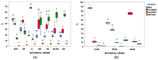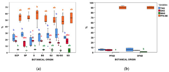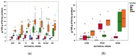 3.3. Differences between Botanical Groups within AO and FAD