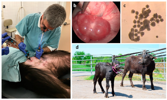- Baldassarre, H.; Bordignon, V. Laparoscopic ovum pick-up for in vitro embryo production from dairy bovine and buffalo calves. Anim. Reprod. 2018, 15, 191–196. [Google Scholar] [CrossRef]
