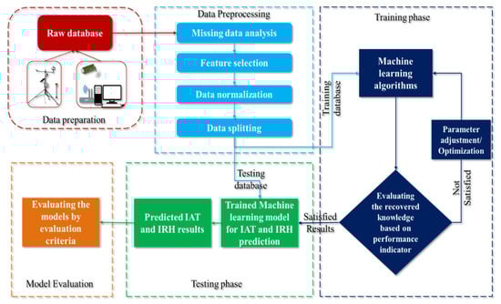Phase by phase flow chart of the implementation of machine learning models for predicting IAT and IRH.