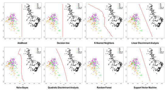 4.3. Machine Learning Algorithms for Classification of the Case and Control Chicken Populations