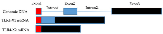 3.2. Sequence Analysis of Two Alternative Spliceosomes of the TLR4 Gene