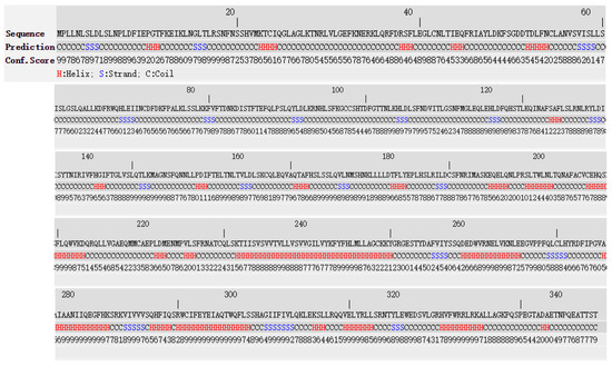I-TASSER prediction of the secondary structure of yak’s full-length TLR4 protein. Note: H represents Helix, S represents Strand, and C represents coil. The confidence score ranged from 1–10; higher the score, higher is the reliability of the predicted secondary structure.