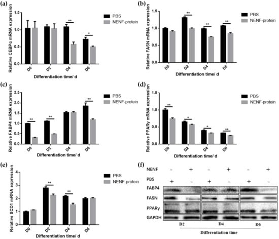 - Su, X.; Wang, Y.; Li, A.; Zan, L.; Wang, H. Neudesin Neurotrophic Factor Promotes Bovine Preadipocyte Differentiation and Inhibits Myoblast Myogenesis. Animals 2019, 9, 1109. [Google Scholar] [CrossRef]